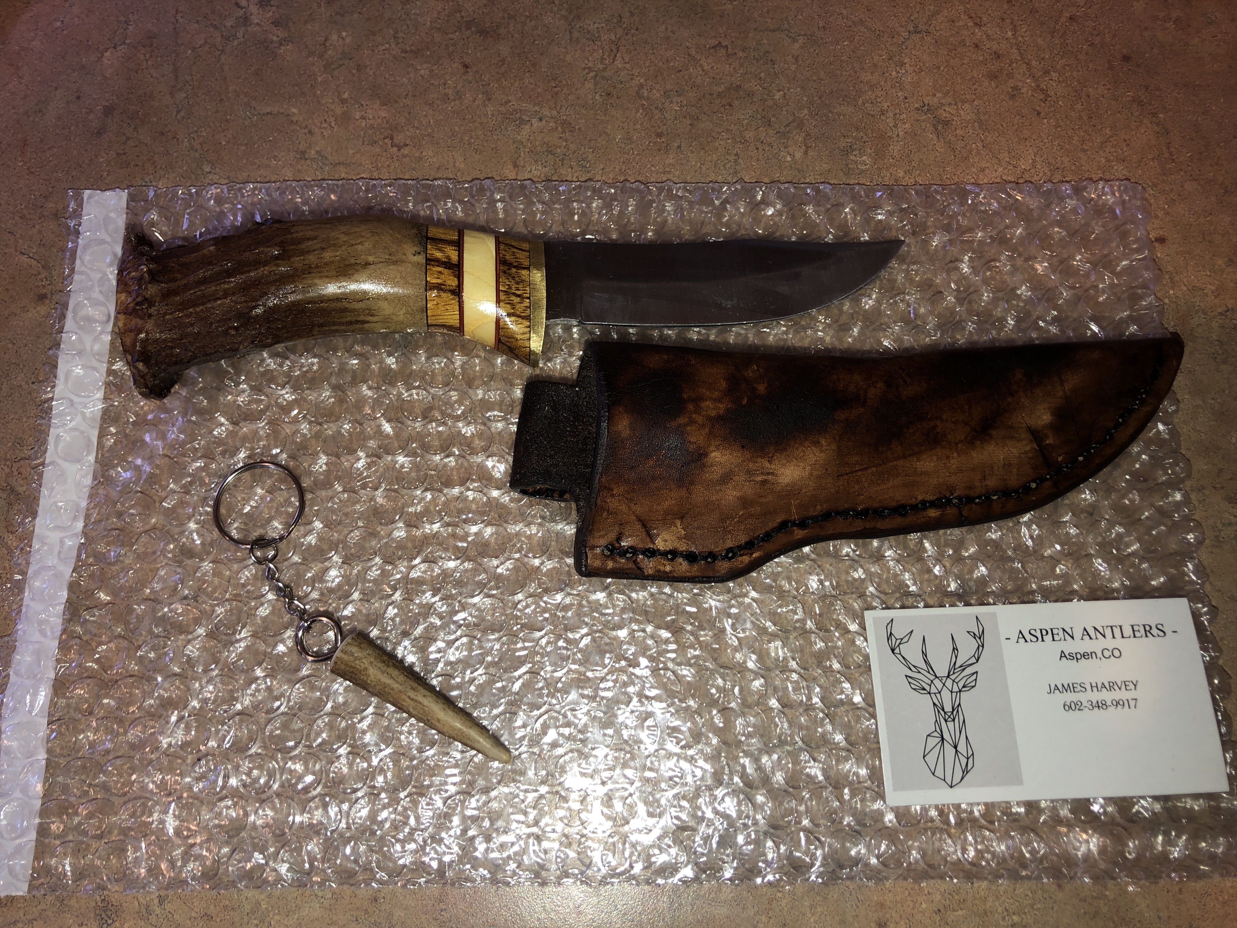 Aspen Antlers is a collection of functional art made from upcycling found antlers that naturally shed in the wild from deer and elk each year. In conjunction, I add layers of Aspen tree in the handle of knives paying homage to this quaint little town.